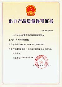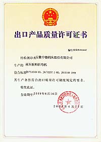 中德公司獲得出口產(chǎn)品質(zhì)量許可證書