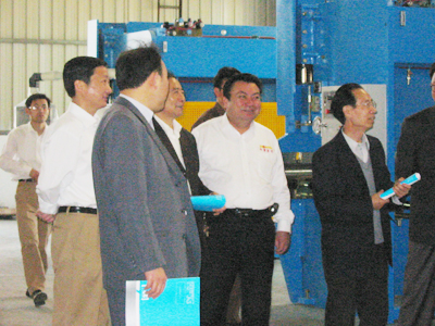 2005年5月6日上午,由安徽省經(jīng)濟學(xué)會和馬鞍山市經(jīng)濟學(xué)會一行數(shù)十人組成的代表團來我公司參觀考察,考察中代表們普遍對我公司數(shù)控機床產(chǎn)品產(chǎn)生了濃厚的興趣。我公司近年來通過引進荷蘭Delem公司生產(chǎn)的數(shù)控系統(tǒng)(目前國際鍛壓行業(yè)知名數(shù)控系統(tǒng))而制造的各種數(shù)控機床,自投入市場以來一直反響熱烈。該代表團在考察中對我公司近年來的快速發(fā)展給予了肯定。