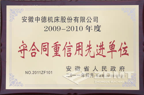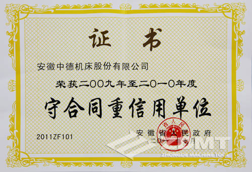 這也是我公司第三次獲得省政府授予的“守合同重信用先進(jìn)單位”稱號(hào),公司不斷發(fā)揚(yáng)“守合同、重信用”的良好傳統(tǒng),不斷探索、潛心經(jīng)營(yíng),逐漸建立、健全了一套適合市場(chǎng)規(guī)律和行業(yè)、企業(yè)自身特點(diǎn)的合同管理機(jī)制,強(qiáng)化了合同的管理,確保了合同的履行,呈現(xiàn)出合格率100%,優(yōu)良率85%以上,履約率達(dá)100%的喜人景象,取得經(jīng)濟(jì)效益和社會(huì)效益的雙豐收,贏得了社會(huì)各界的廣泛認(rèn)可,增強(qiáng)了社會(huì)大眾對(duì)“中德機(jī)床”品牌的認(rèn)知度,加速了品牌傳播、提升了品牌知名度,樹立了中德機(jī)床公司良好的社會(huì)形象。